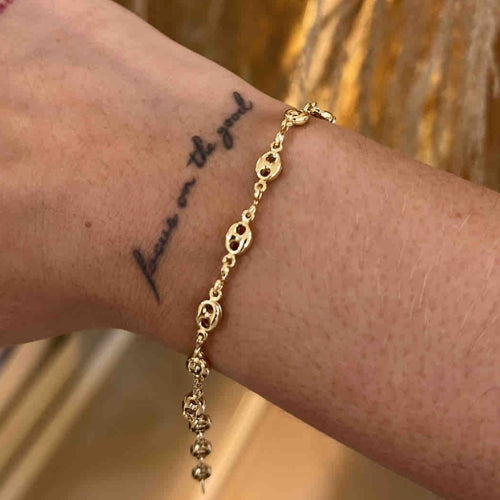 La Pulsera Gante es sinónimo de sofisticación. Con un diseño sobrio y atemporal en oro laminado, esta pieza refleja el equilibrio perfecto entre minimalismo y presencia. Ideal para mujeres que saben que la verdadera elegancia está en los detalles.